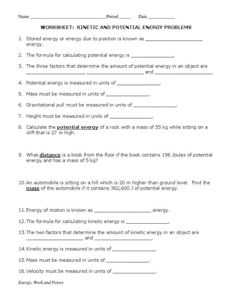 Work Power And Energy Worksheet - Work And Power Worksheet Tobiasreaves S Blog /